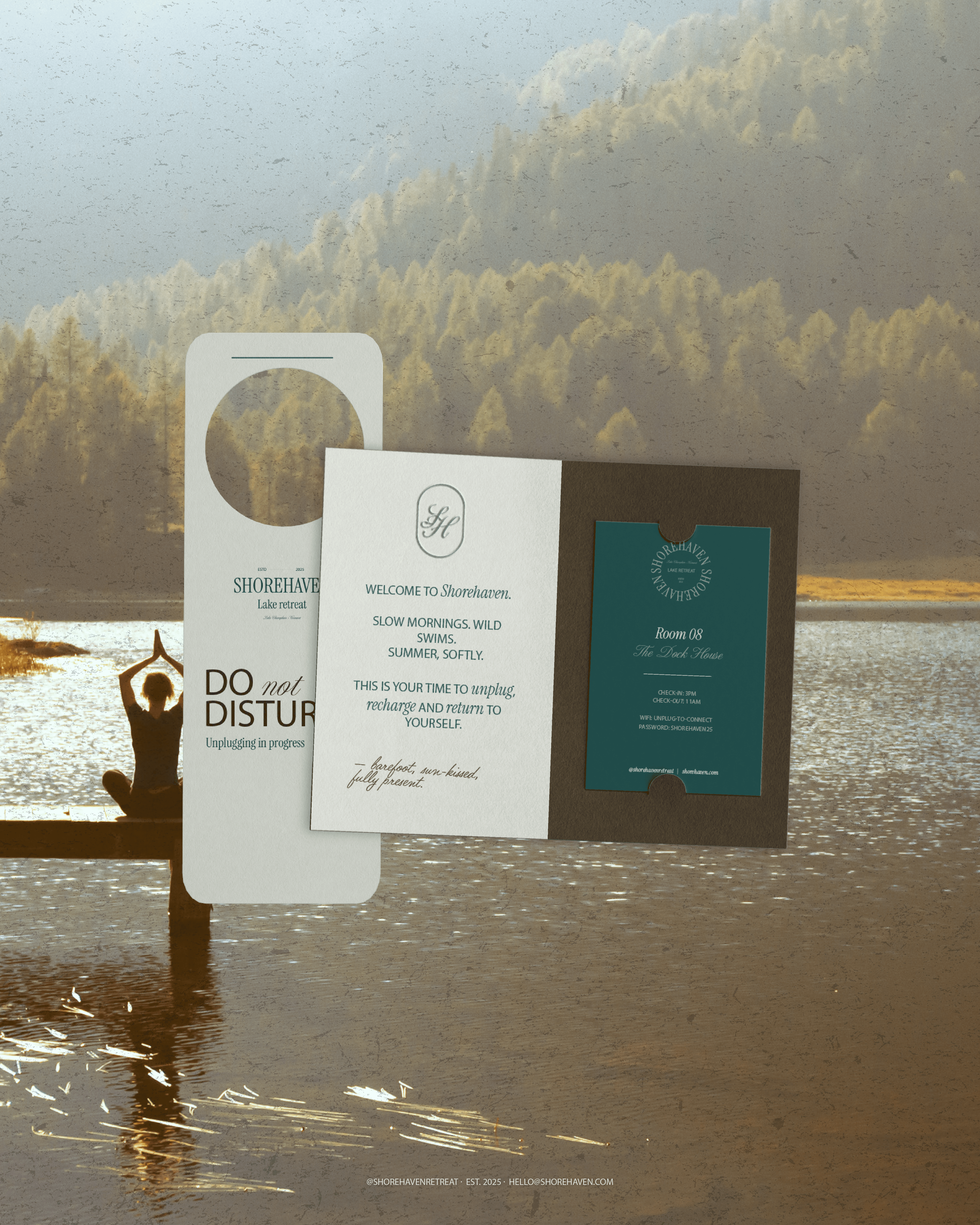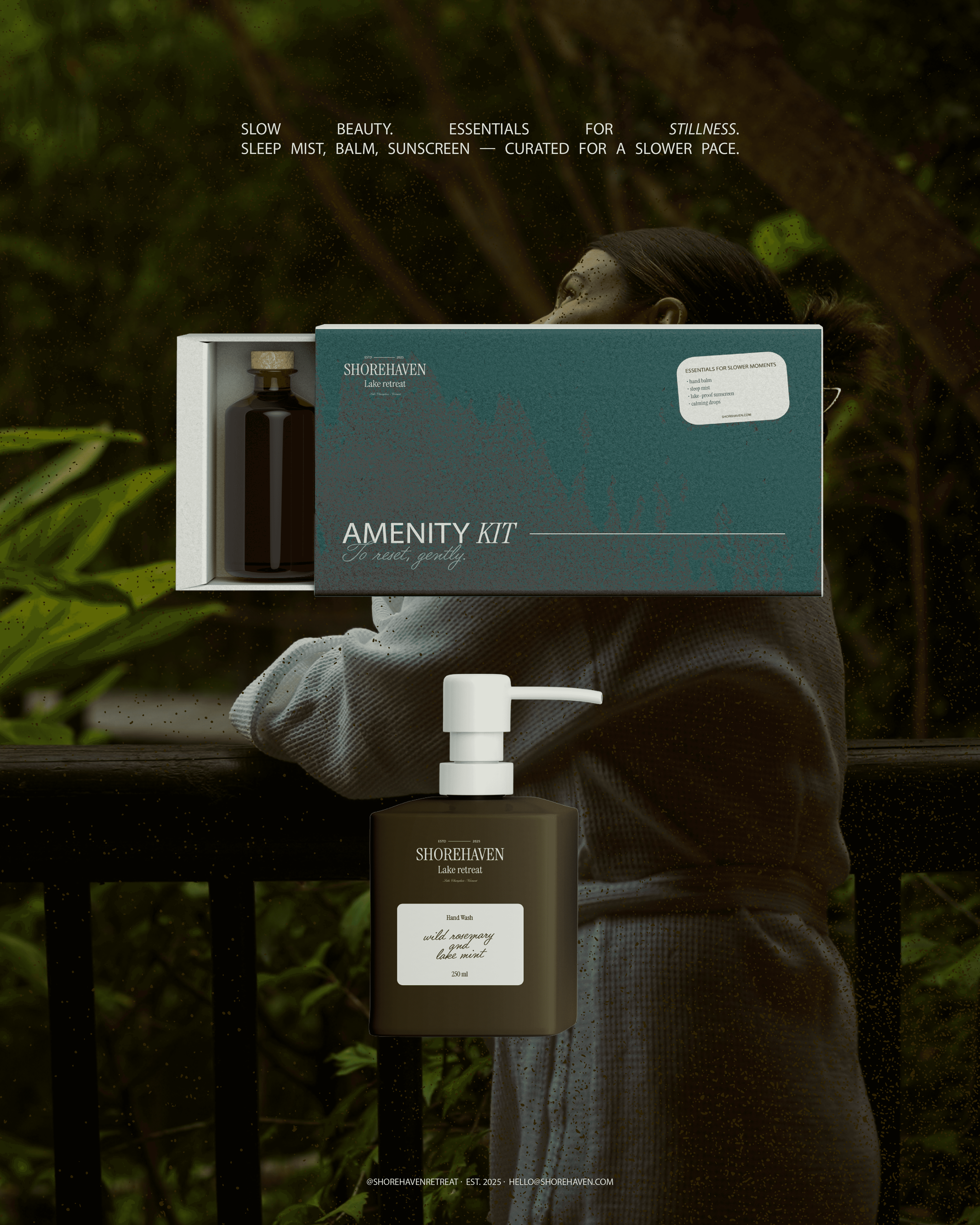 Shorehaven est un centre de retraite de bien-être, perdue dans les vallées du Vermont. Avec son esthétique chic et posée, elle transmets la douceur ressentie par les clients.